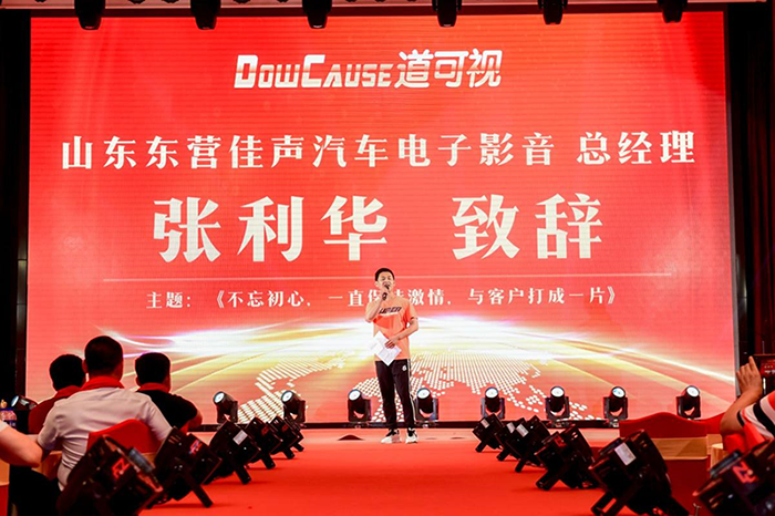 山東東營佳聲汽車電子影音總經(jīng)理張利華同樣作為優(yōu)秀代理商上臺發(fā)言,帶來“不忘初心,一直保持激情,與客戶打成一片”的主題分享。